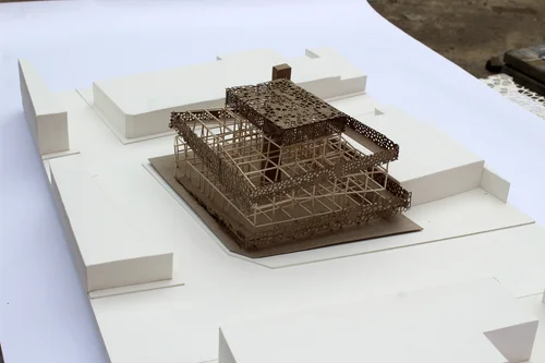 The program of the 1-story prototype is a veterinarian hospital and the 3-story prototype contains the vet hospital, as well as, a facility for the study of infrastructure, and an atmospheric monitoring station.
